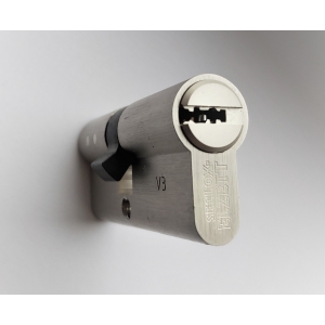Cilindrul este confectionat din alama si are finisajul nichel matt. Setul contine un cilindru, 5 chei cu amprenta, surub de fixare si card de siguranta. Nu trebuie sa fii un profesionist, cu notiuni tehnice in domeniu pentru a monta un astfel de butuc. Este suficient sa urmezi intructiunile de montaj pe care le gasesti in pachet.