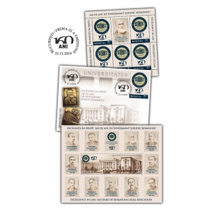 Pe plicul „Prima zi” a emisiunii este reprezentat Palatul Facultății de Drept, creația grafică a arhitectului Petre Antonescu împreună cu medaliile aniversare de bronz ce redau chipul primului Decan, Constantin Bosianu (1815-1882), și clădirea facultății împreună cu sigla aniversară de 160 de ani de la înființare.