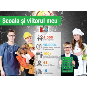 Profesorii și elevii participanți au parcurs online modulul Junior Achievement (JA), acumulând astfel puncte pentru școala lor, și au realizat și prezentat, în echipe, proiecte practice prin care au identificat soluții pentru prevenirea abandonului școlar în comunitatea din care provin.