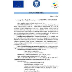 Lansare proiect „Sprijin financiar pentru SC MAXITRANS COMPANY SRL”