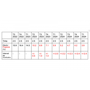 Pentru trimestrul al treilea, BNR estimează o inflație de 8,9%, în continuă descreștere până în primul trimestru al anului 2025, când, conform estimărilor, ar trebui sa avem o inflație de circa 4%.